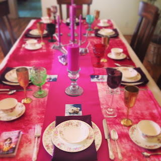 We had a very fancy dinner party with all of the girl-of-honor's mom's close friends. The table was dressed in all pink and reds and we ate a multi-coursed meal (all of her favorite dishes).